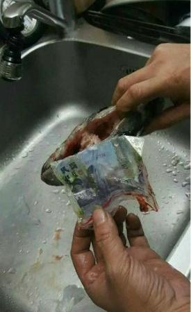When some people are happy to be able to buy fresh fish for their food, men in China cannot be happier when the fish they buy contains money.